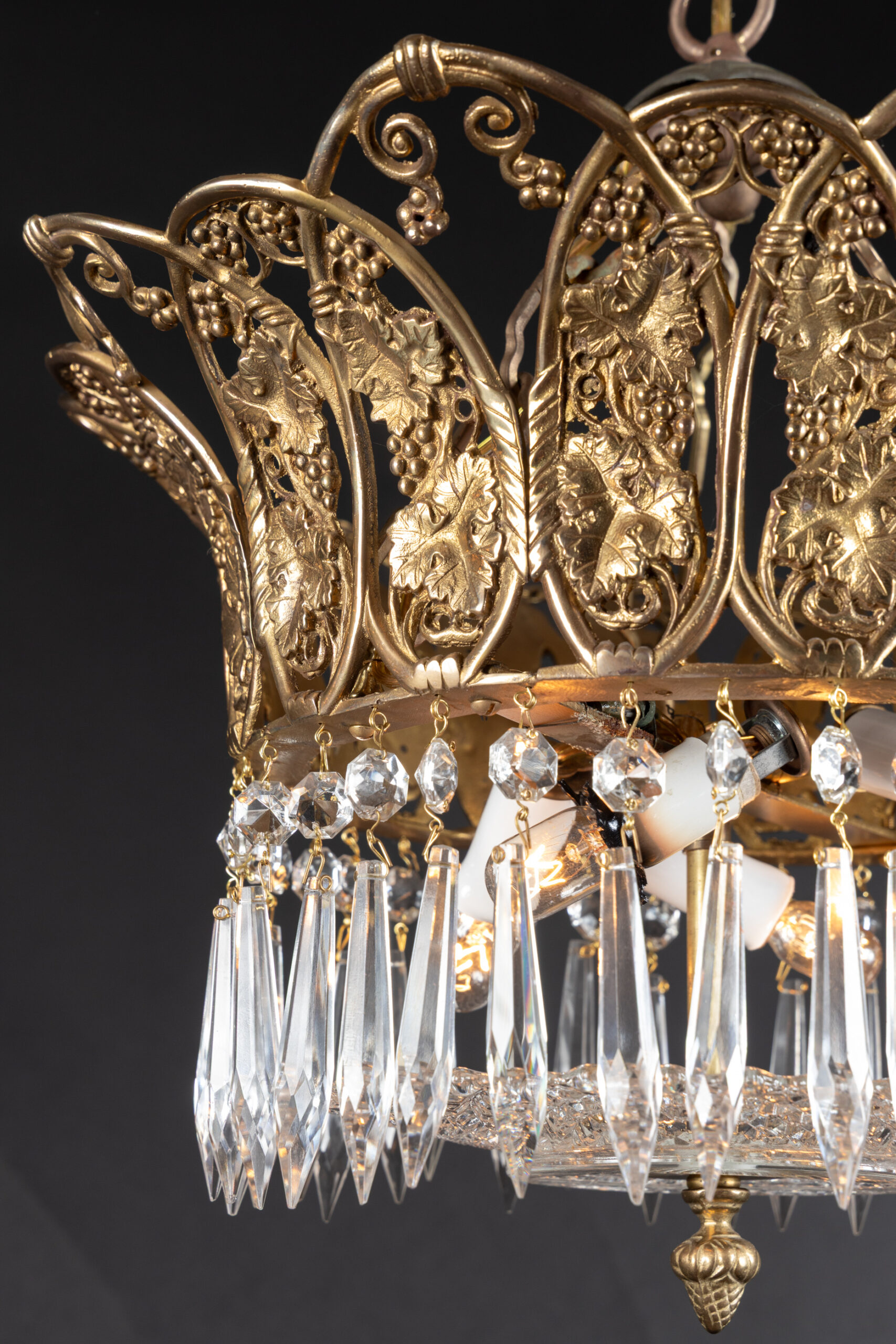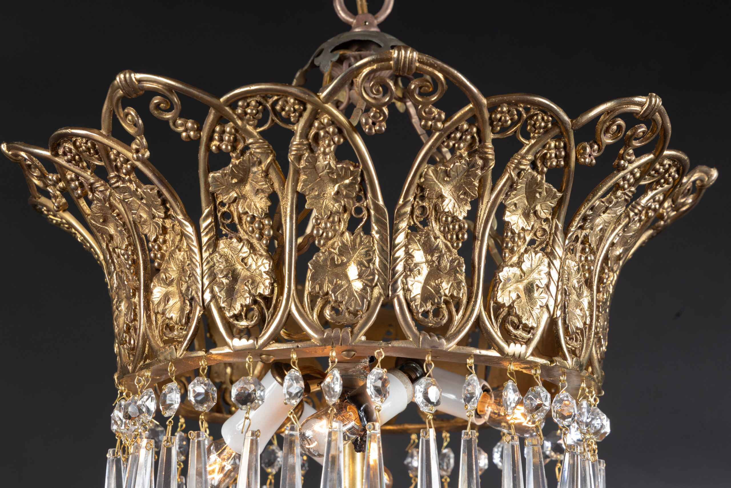 Early 20th Century French Bronze and Crystal Chandelier, Grape Crown