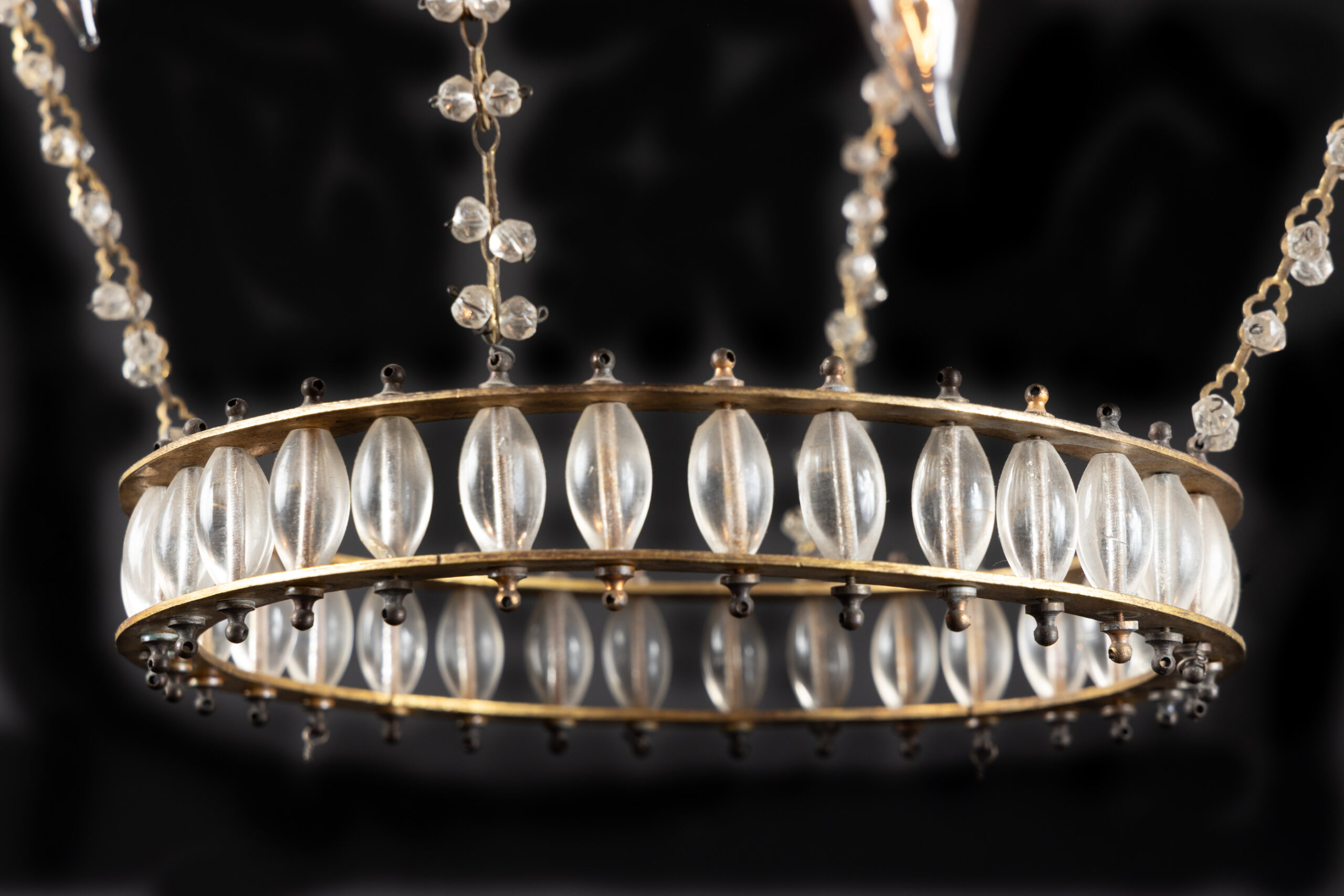 French Early 20th Century Bronze & Crystal Unusual Chandelier