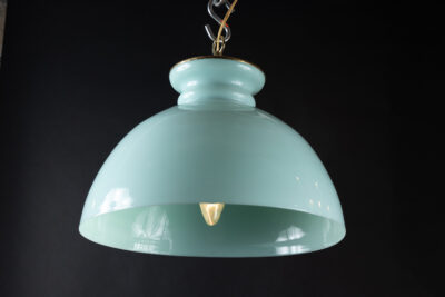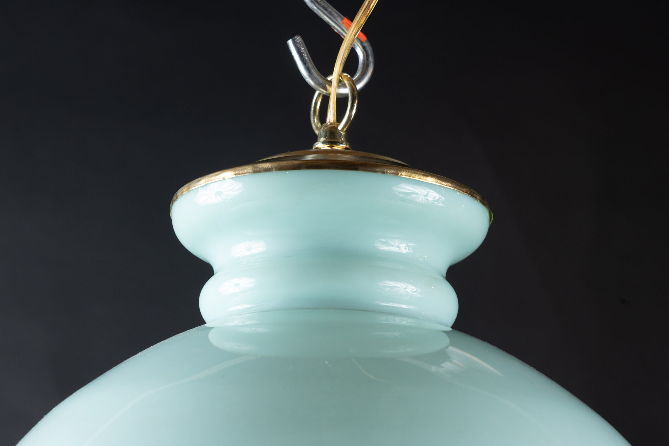 French Mid 20th Century Opaline Glass hanging light with gold details at top