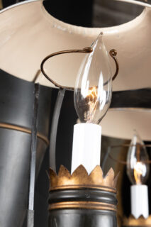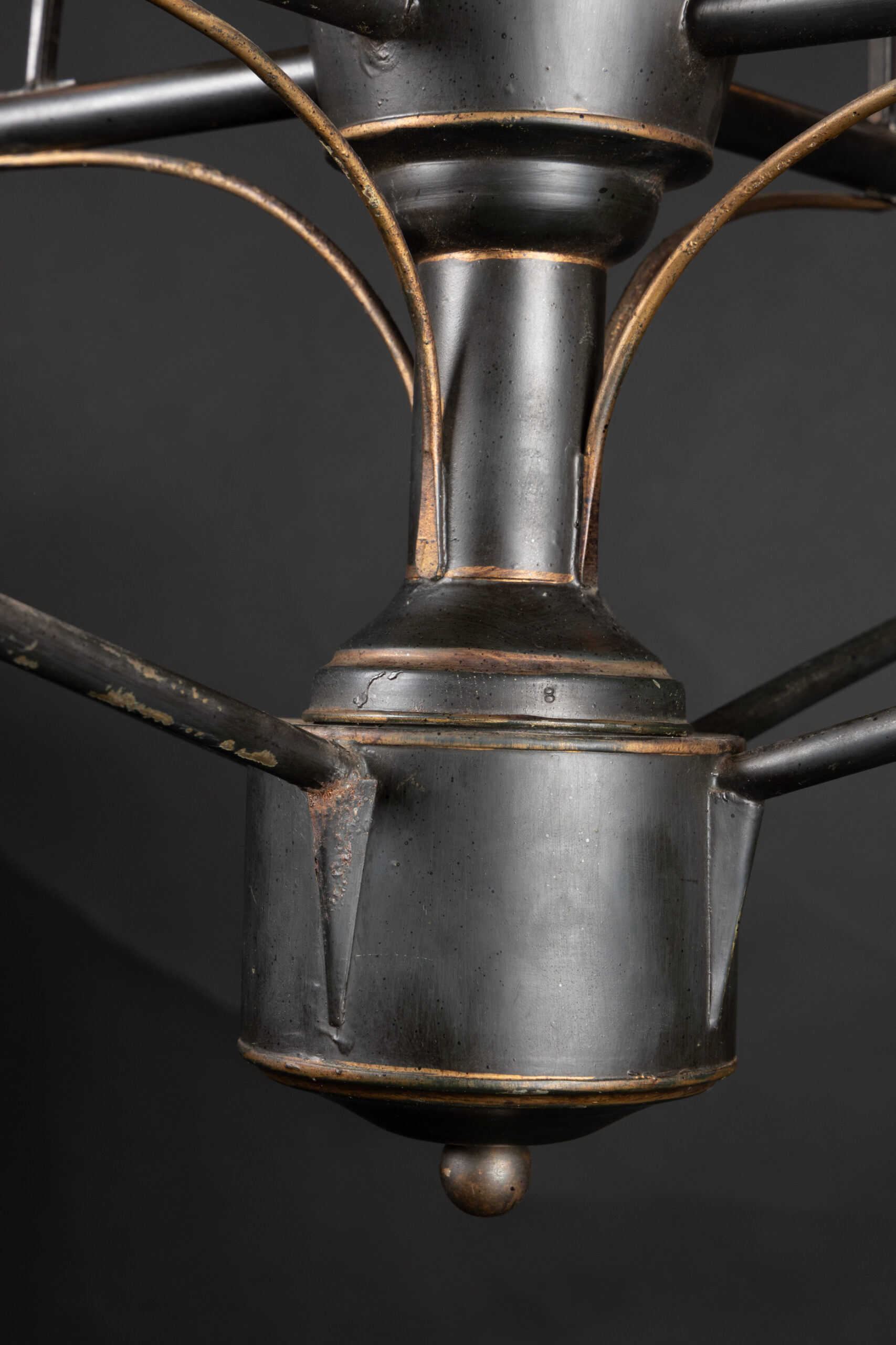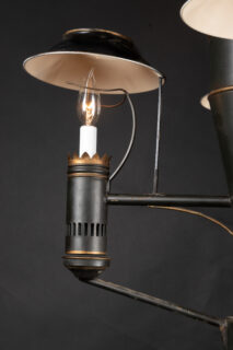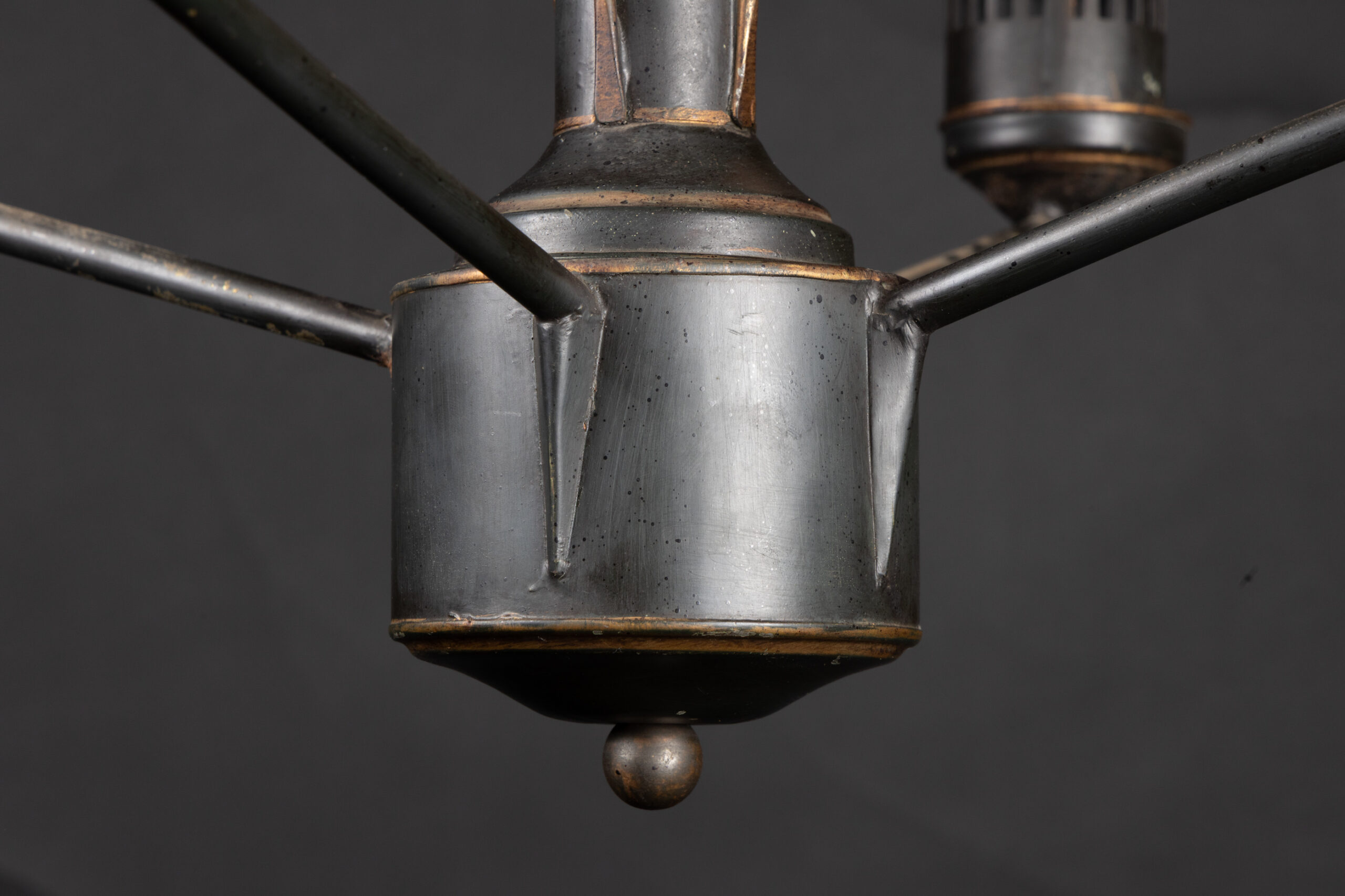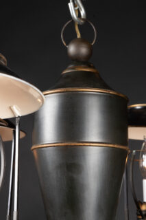 Italian Mid 20th Century Painted Black and Gold Leaf on Tole Chandelier