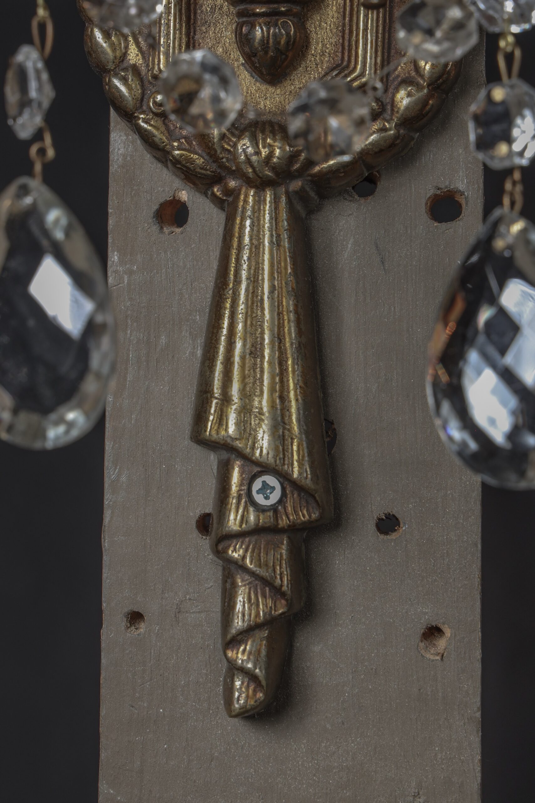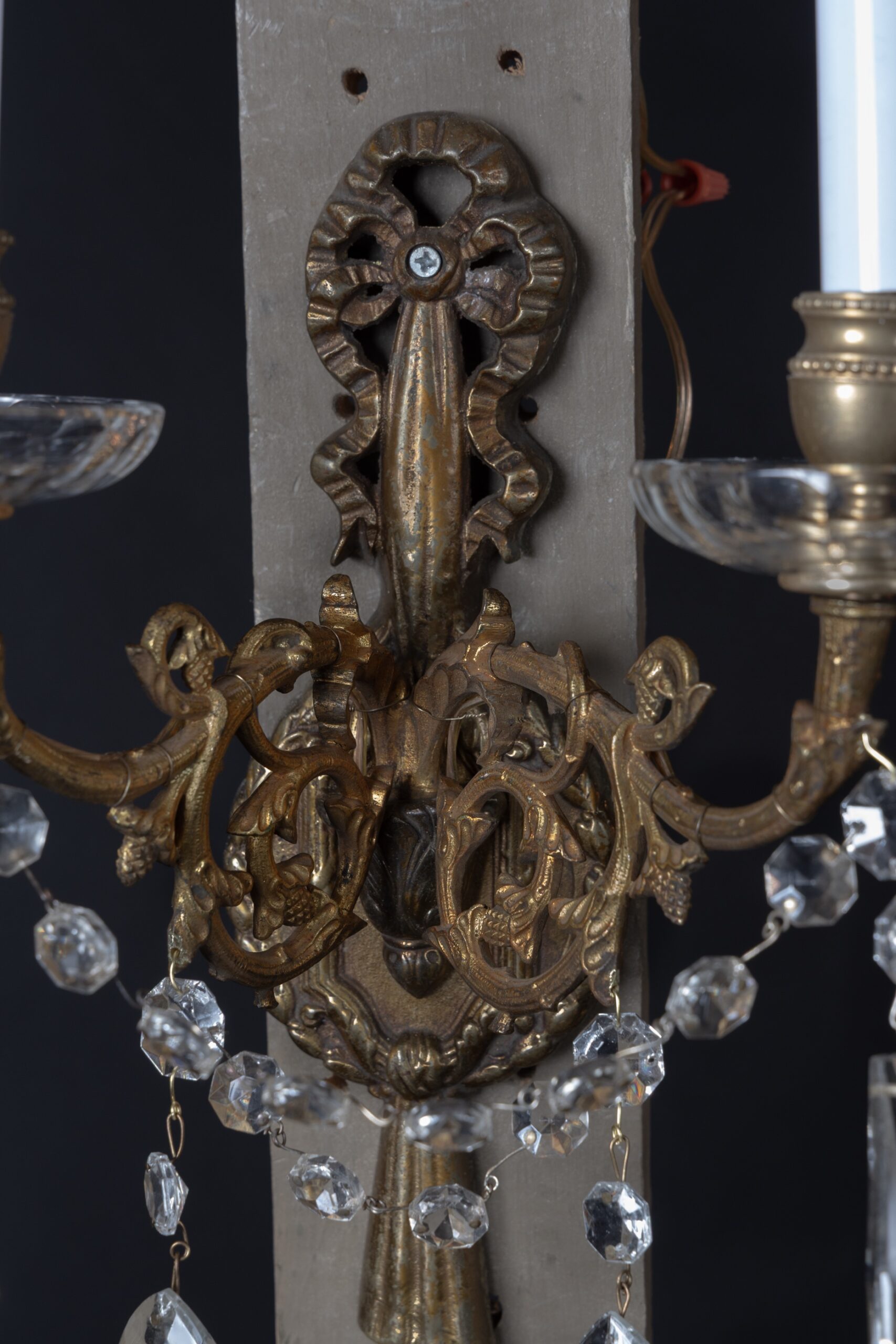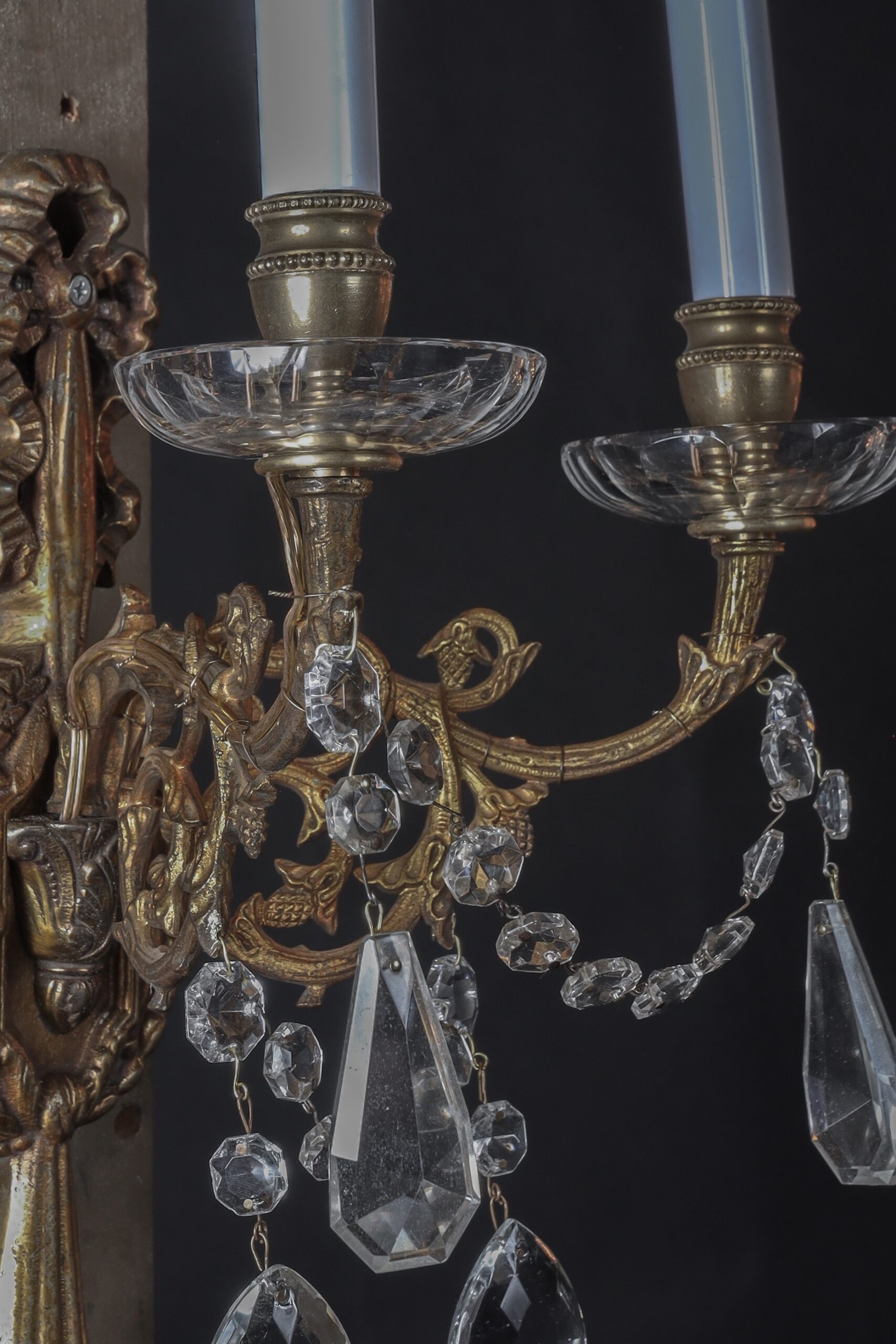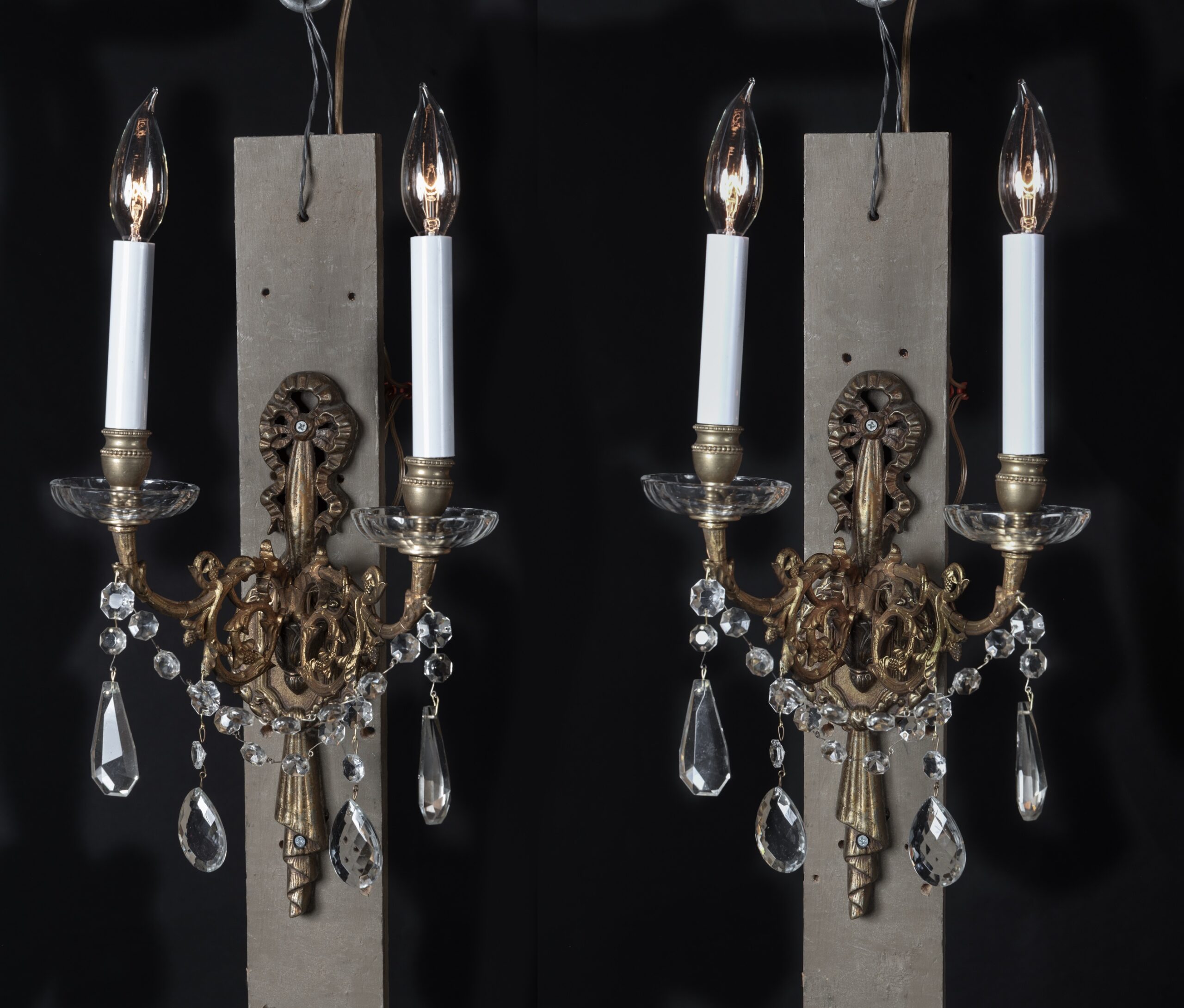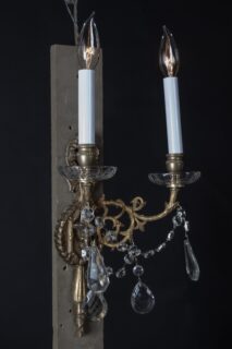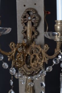 Pair of French 19th Century Louis XVI Bronze and Crystal Sconces