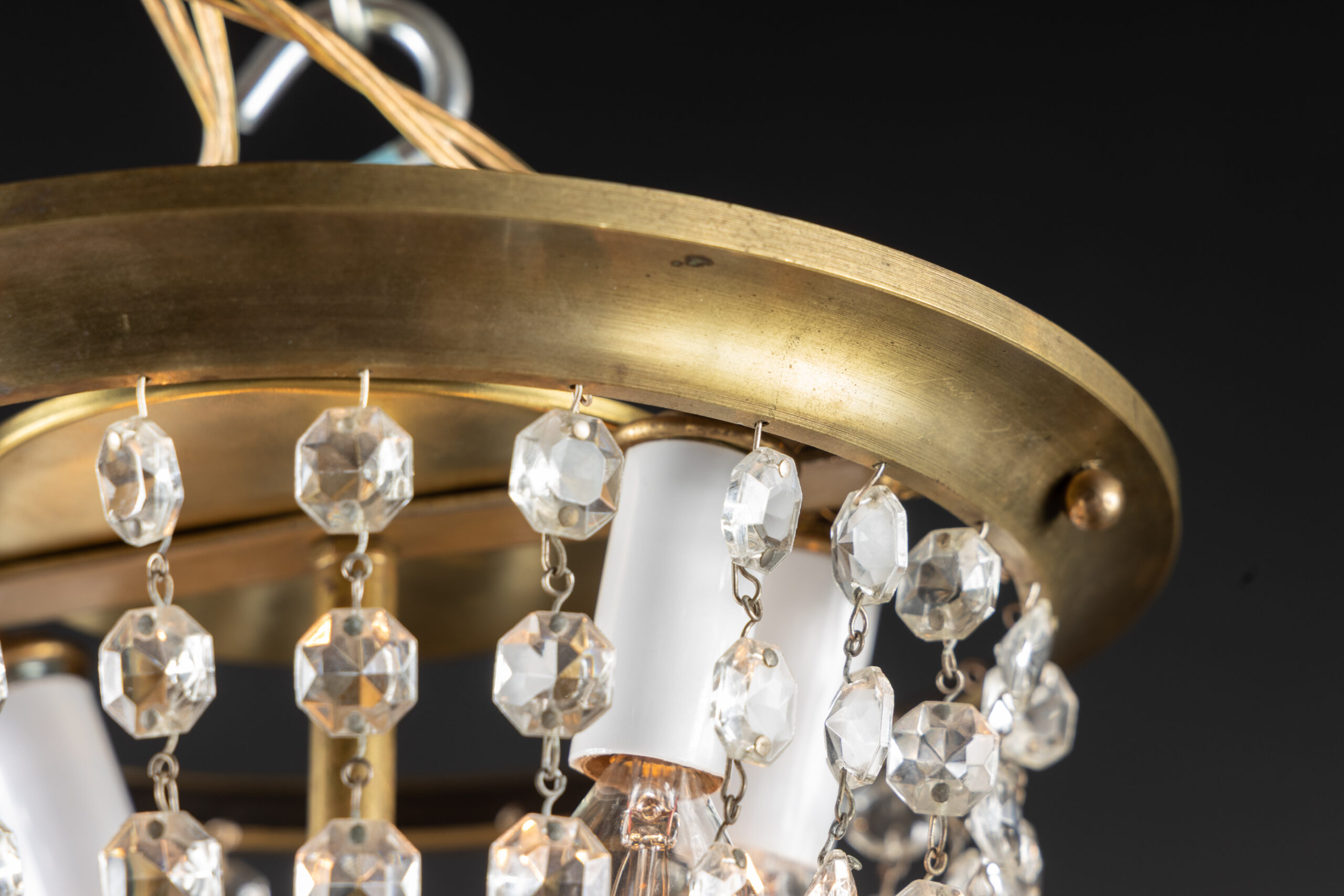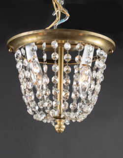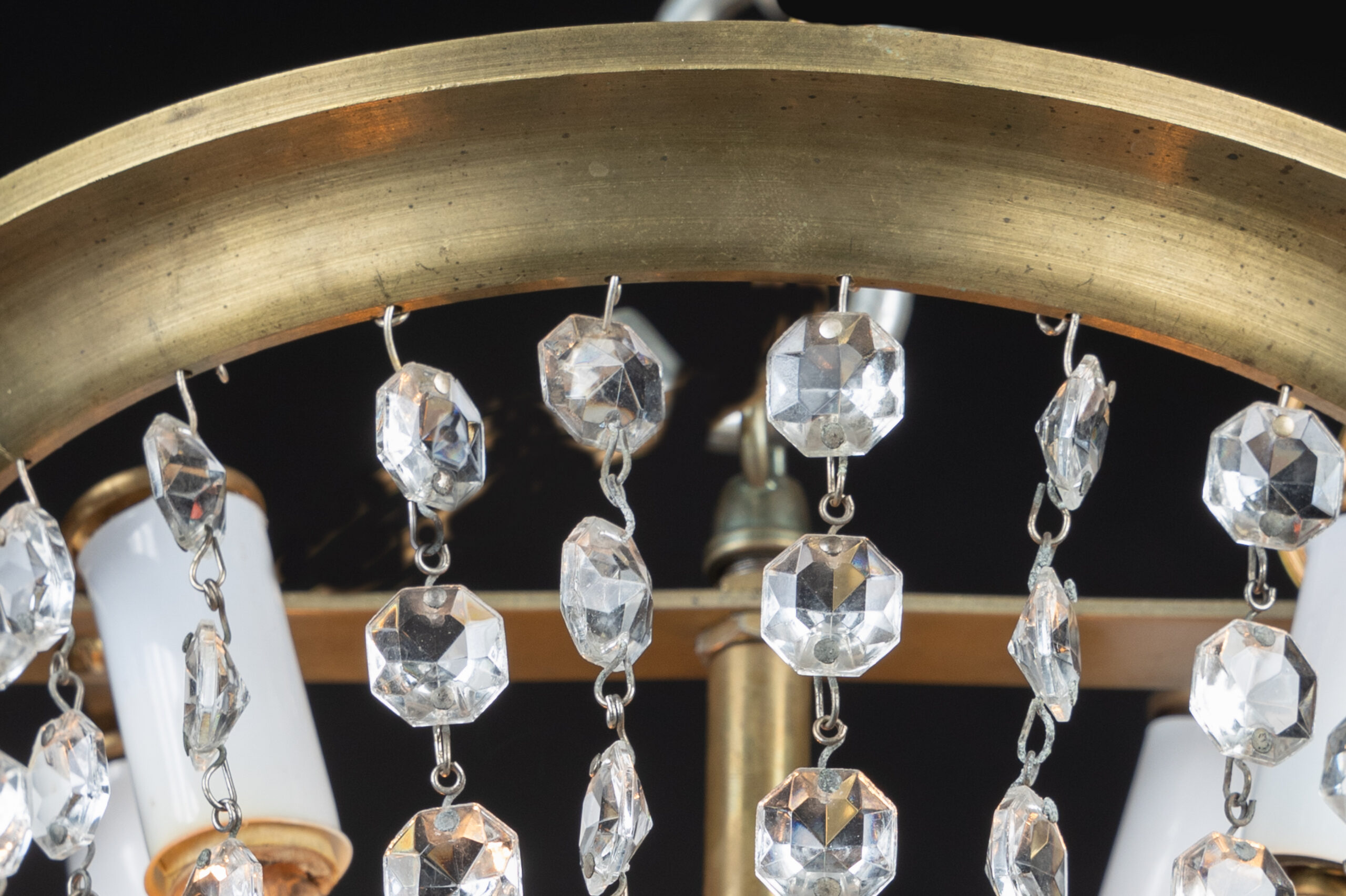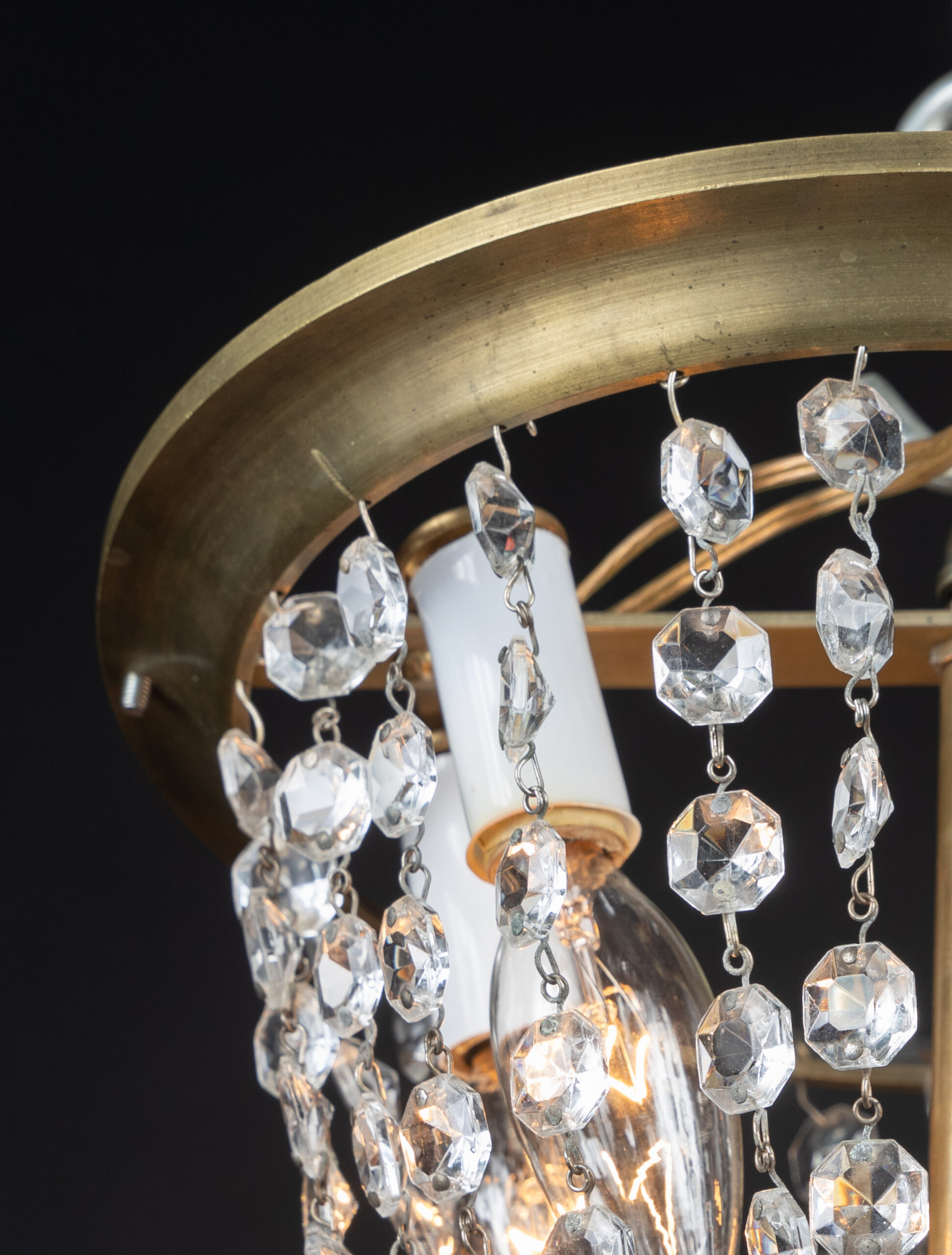 French late 19th century bronze and crystal plafonniers with bronze ring, octagonal cut crystal beads, and acorn finial