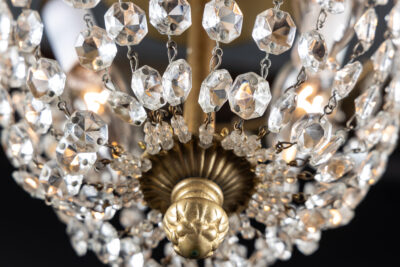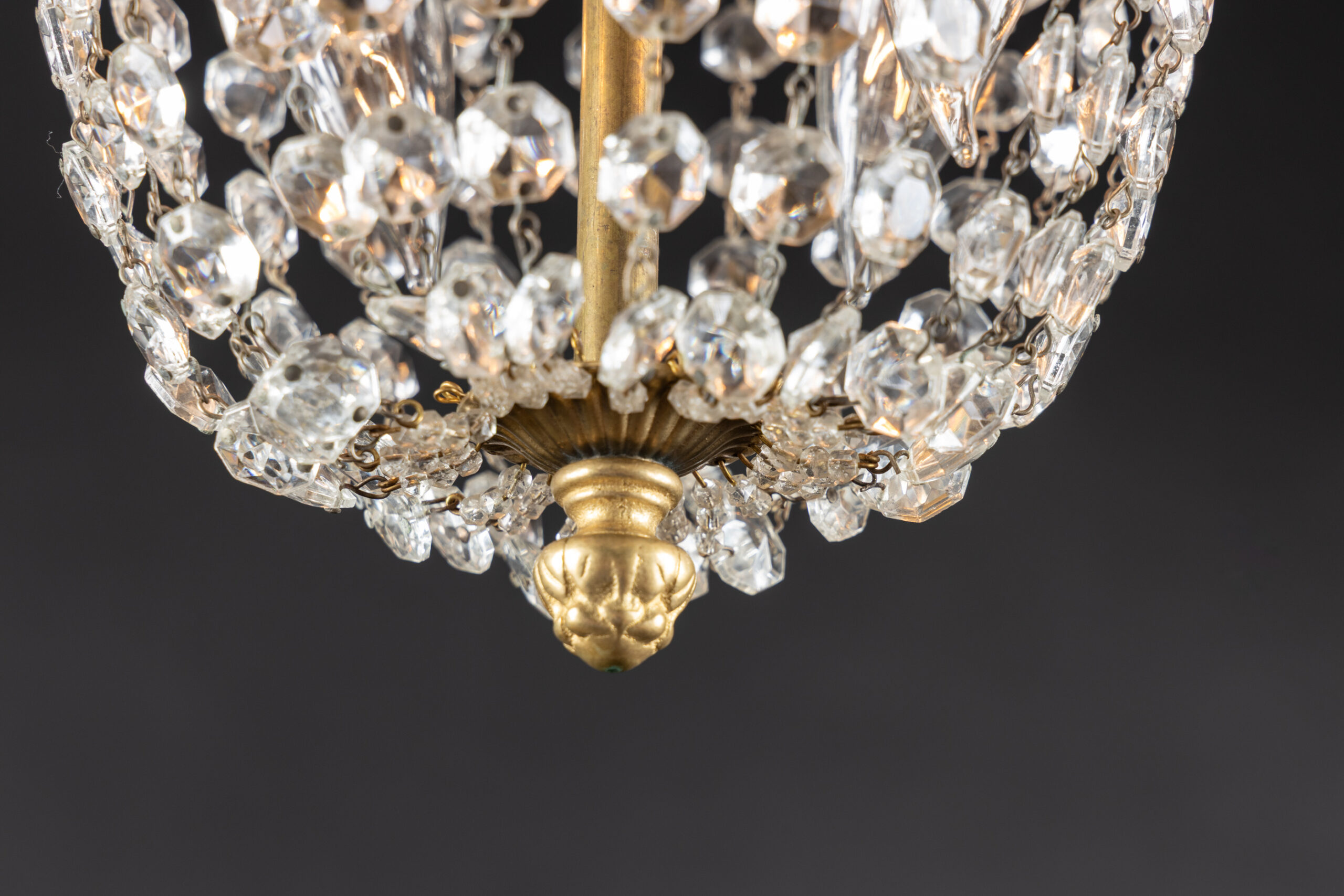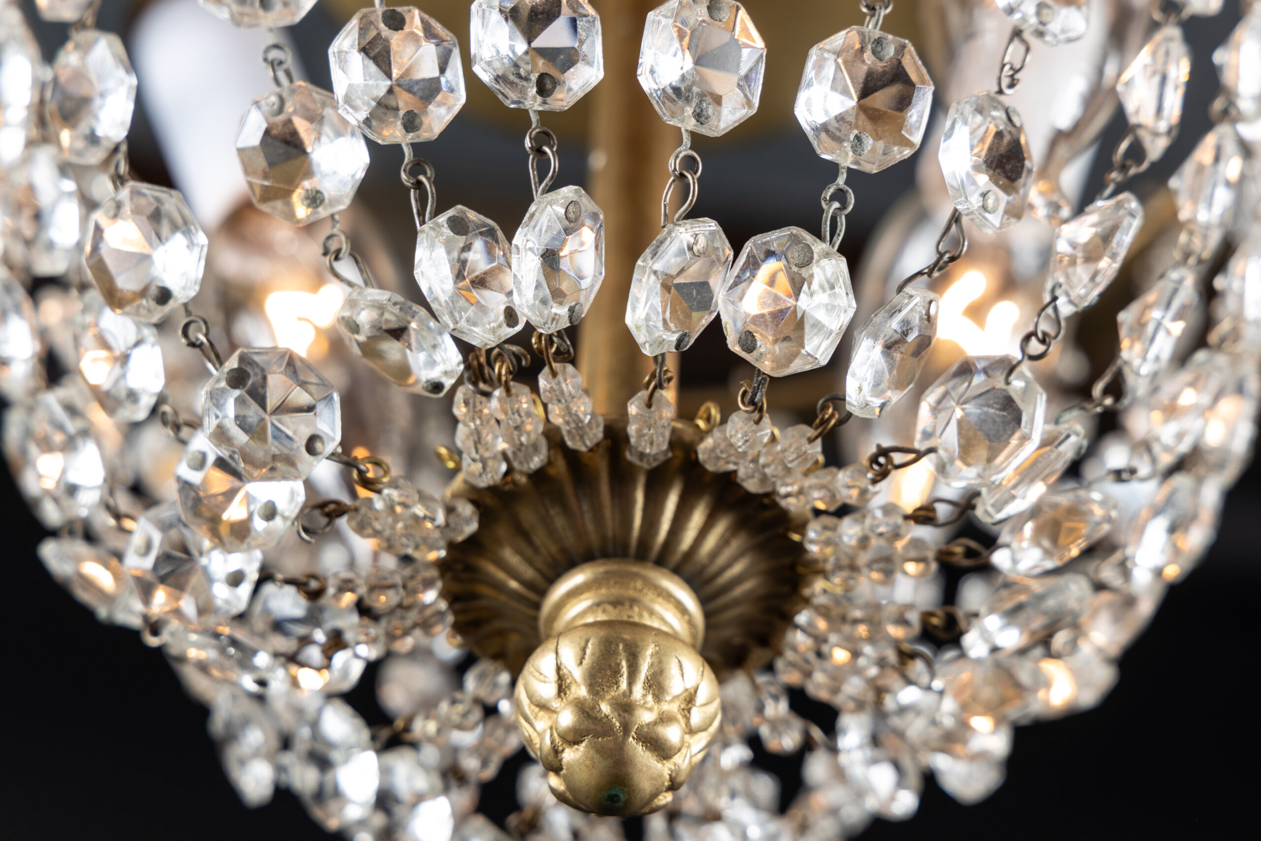 Pair of French Late 19th Century Bronze and Crystal Plafonniers