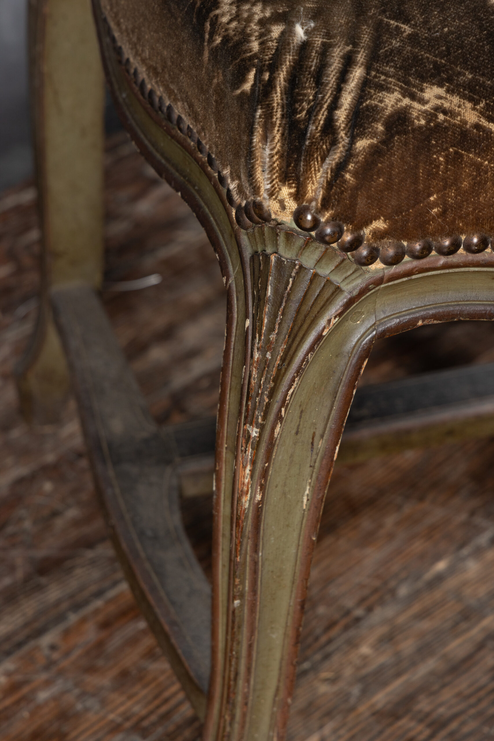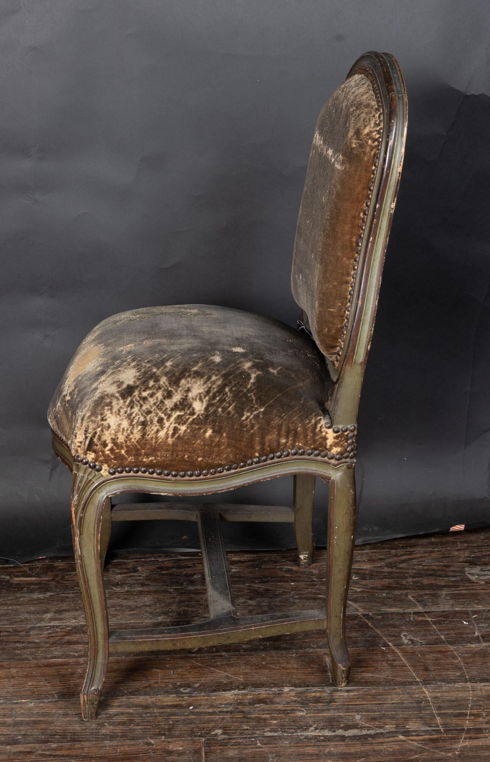 Set of 12 French 19th Century Louis XV painted side chairs with stretchers upholstered in velvet